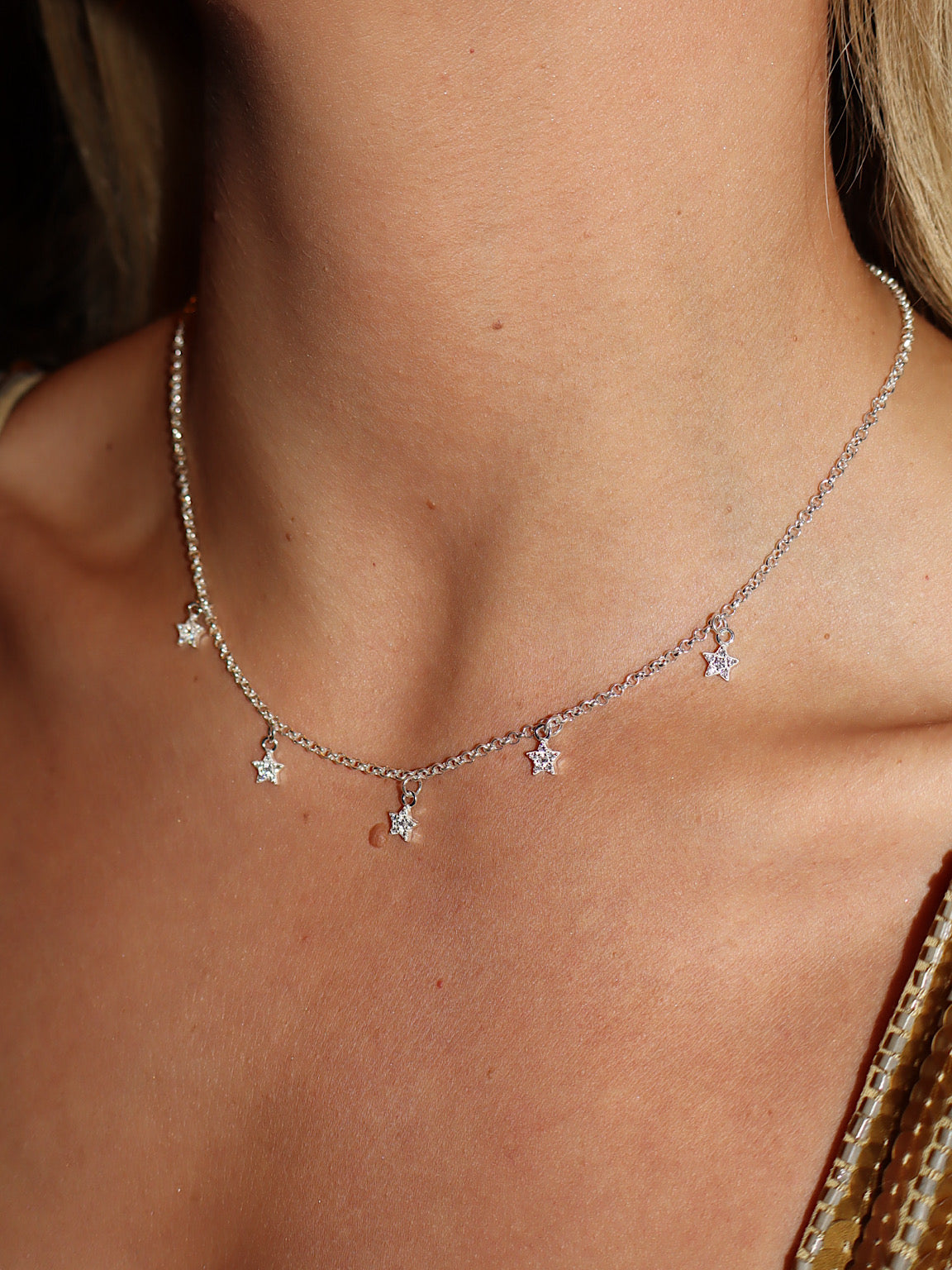 Expertly crafted, this 5 Mini Sparkle Star Necklace is a stunning addition to any jewellery collection. Made from high-quality sterling silver, this necklace features a delicate CZ mini star charm, adding a touch of romance to any outfit. Elevate your style with this beautiful piece that exudes elegance and sophistication.