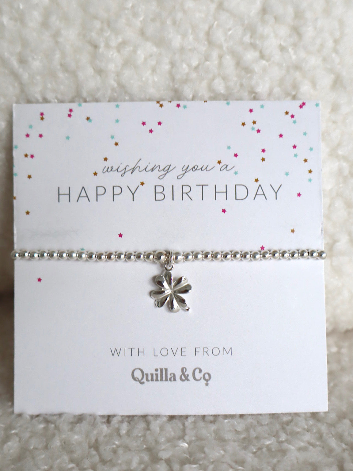 This handmade Lucky Charm Bracelet features a sterling silver clover charm, adding a touch of luck to your everyday wear. With its intricate design and high-quality materials, this bracelet is a perfect addition to any jewellery collection or a perfect gift for that someone special. Elevate your style with this unique and charming accessory.