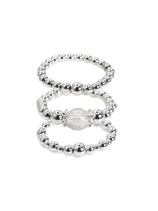 Indulge in the luxurious elegance of our Rock Crystal Ring Stack. This set features three delicately crafted rings, each adorned with a shimmering rock crystal that is known for being a powerful healing stone and is associated with new beginnings. Perfect for any occasion, these rings will elevate any outfit and add a touch of sophistication to your look. Elevate your style with this exclusive set today.