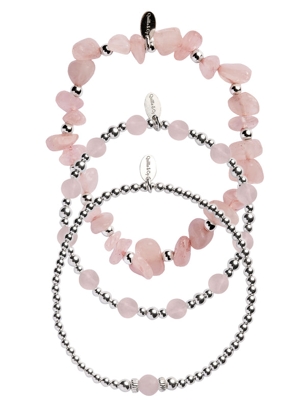 Our Rose Quartz Stack is an eye catching and versatile accessory, crafted with naturally varying gemstones for a truly one-of-a-kind look. A Rose Quartz is known as a healing crystal and the stone of unconditional love. Elevate your style with this stunning stack.