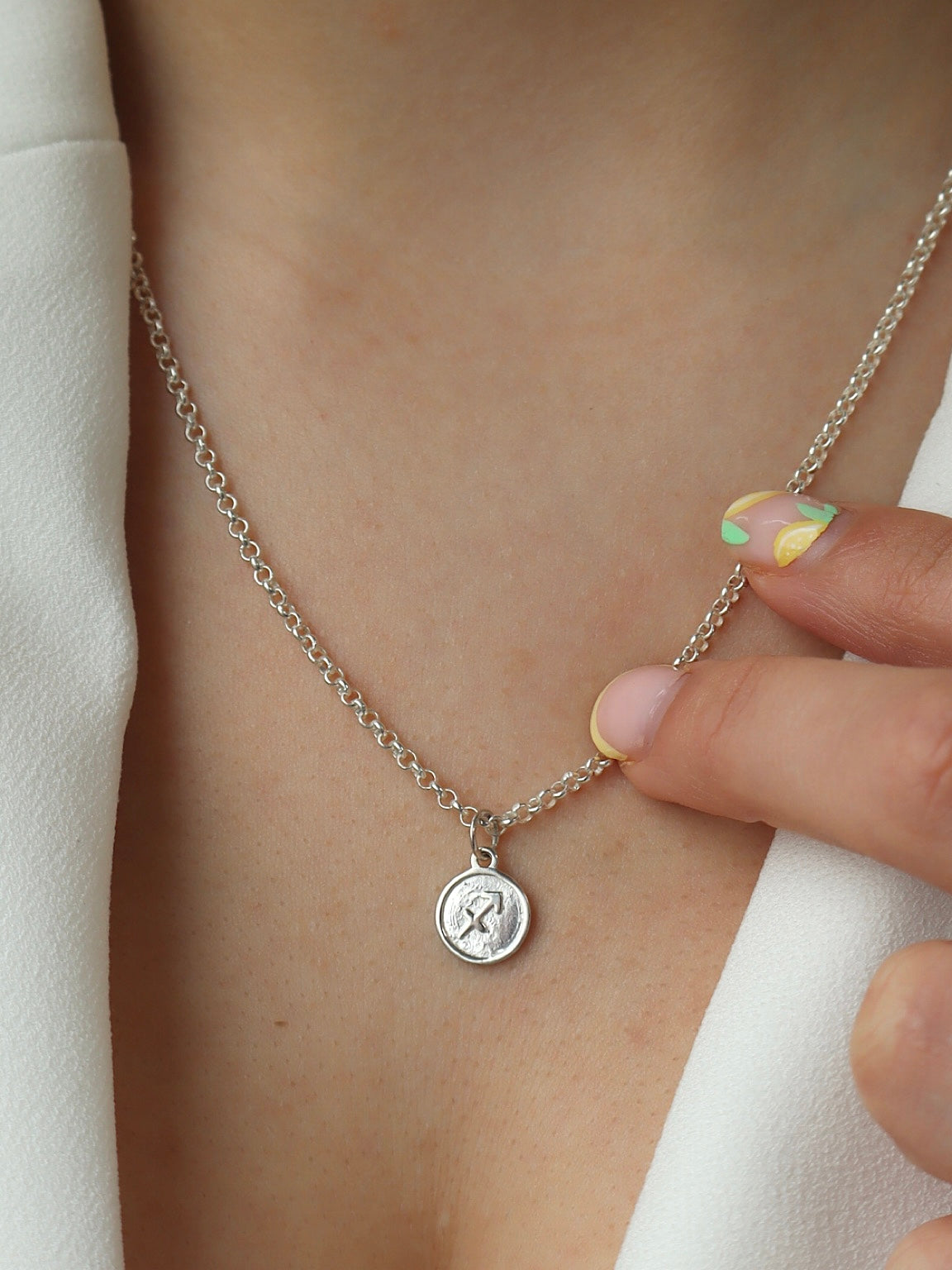 This finely crafted zodiac necklace features a detailed charm of your star sign's symbol, set on a sleek, polished pendant, offering a stylish and meaningful way to express your personality and inner strength.