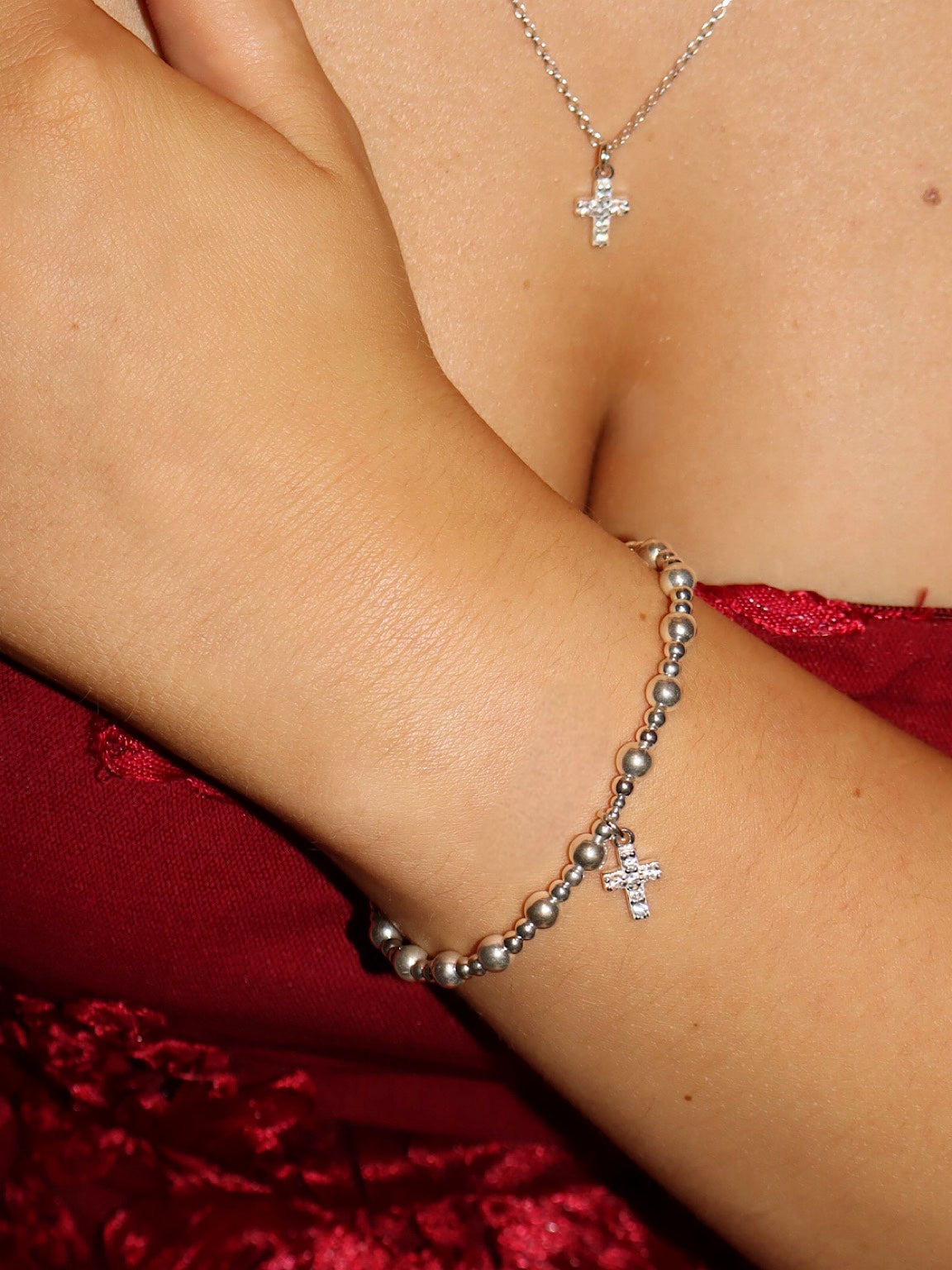 Add a touch of festive sparkle to your look with the Sparkle Cross Popcorn Bracelet. Perfect for celebrations or gifting, this bracelet brings joyful elegance to your wrist all season long.