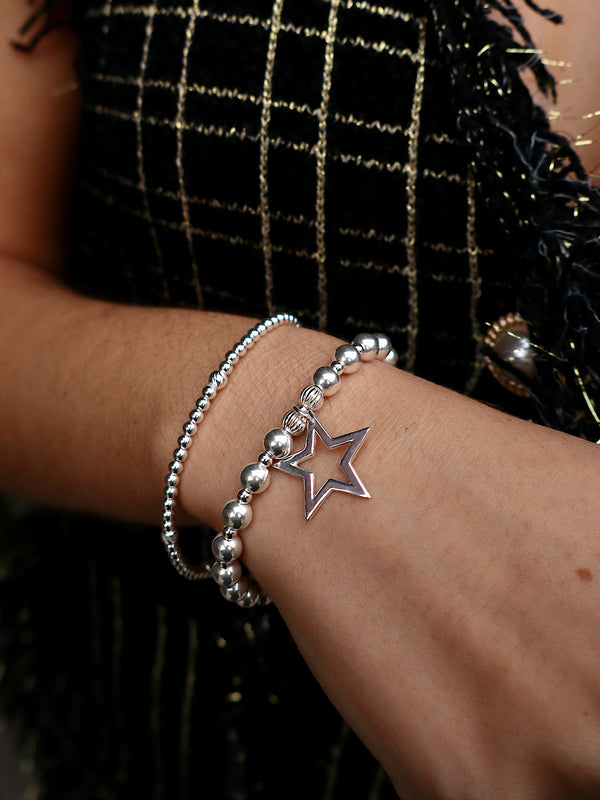 Add a touch of shimmer to your wardrobe with the Star Light Bracelet Stack. This handmade sterling silver stack includes two bracelets that will make you shine bright. Perfect for any outfit, these bracelets are a must-have for any jewellery collection. Give the gift of sparkle and style with the Star Light Bracelet Stack.