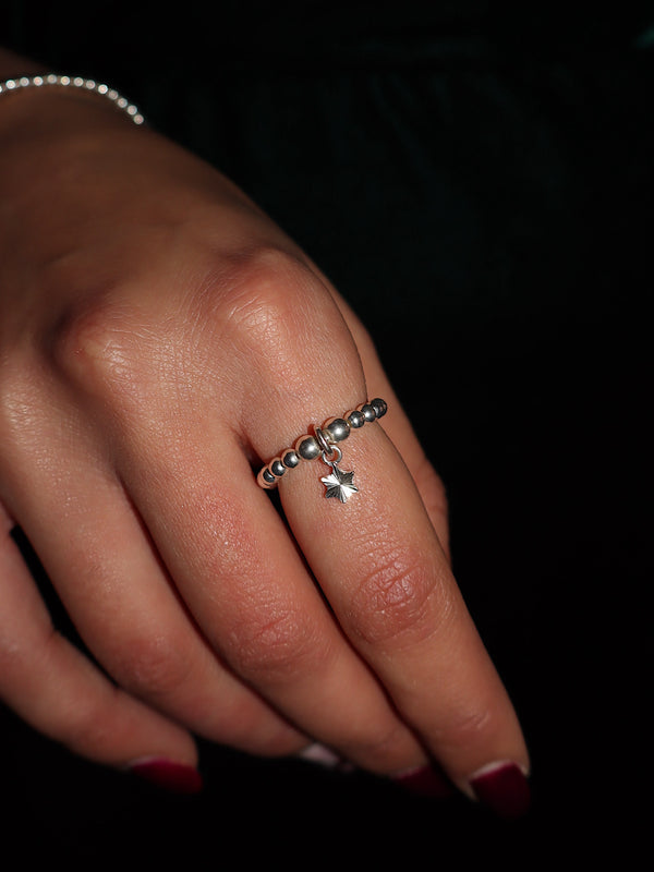 The Super Star Ring boasts a flashy design crafted from handmade sterling silver, with its intricate craftsmanship and elegant composition, this ring exudes luxury and sophistication. Elevate your style with this stunning accessory that is sure to make a statement.